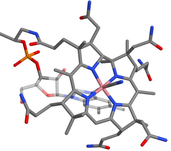 Representation of hydrated vitamin B12 molecule Image by Easyloc via Wikimedia Commons.